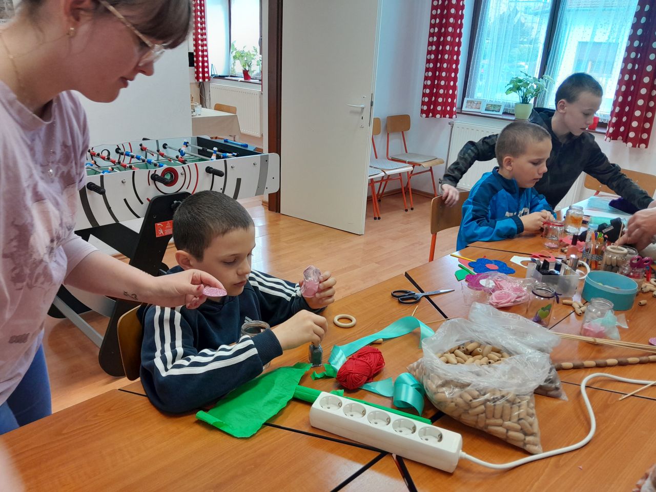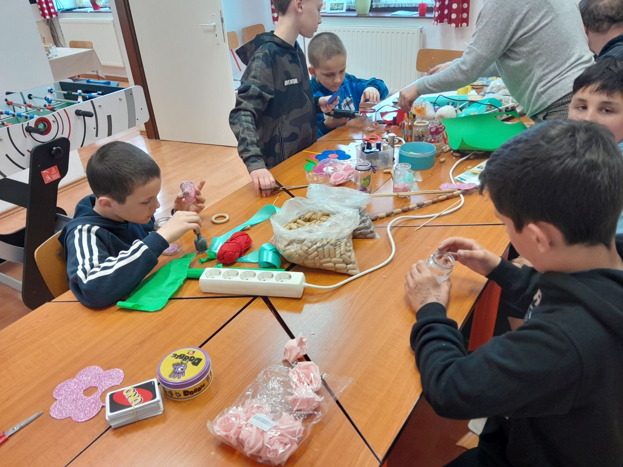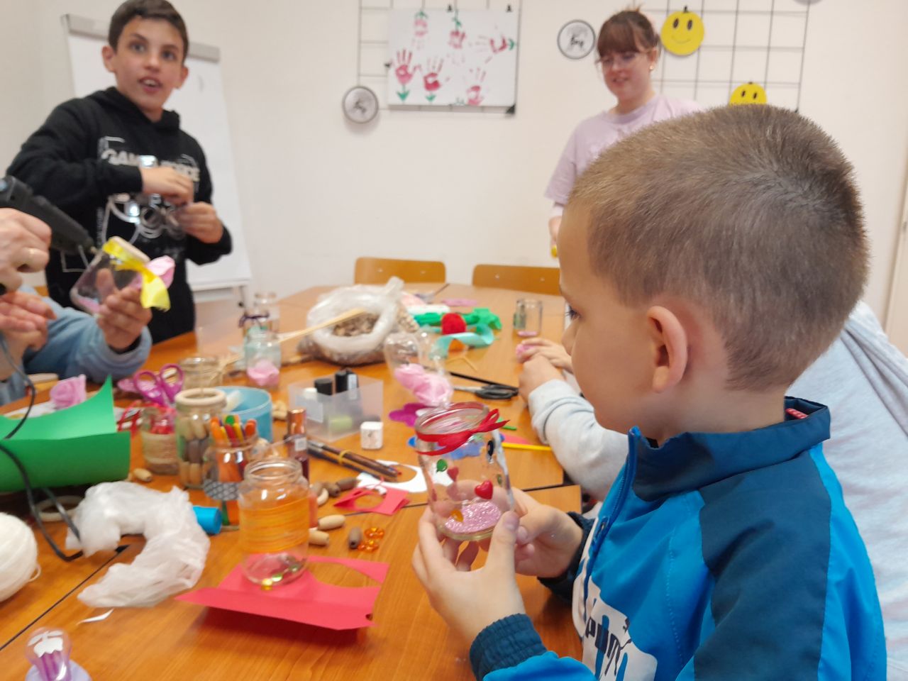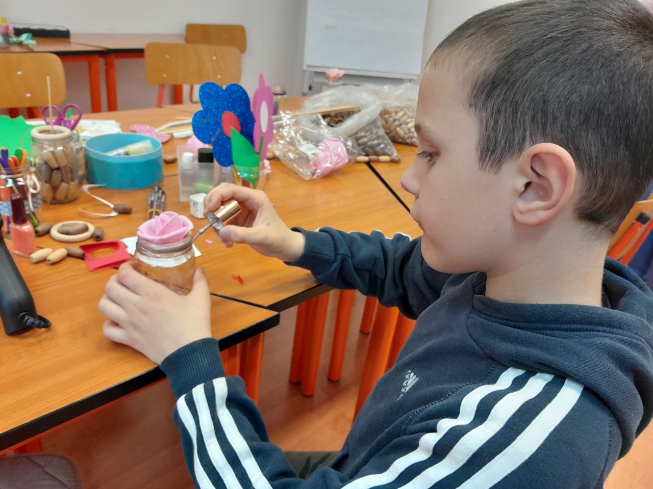 Idén május 7-re esett anyák napja vasárnapja. Az azt megelőző héten minden nap lehetősége nyílt a gyerekeknek ajándék készítésére a délutáni tanulás után. Ügyes kis kezek többféle technikával szebbnél szebb alkotásokat készítettek. A kis üvegekbe zárt szeretetüket pénteken hazavitték édesanyjuknak.
