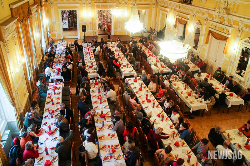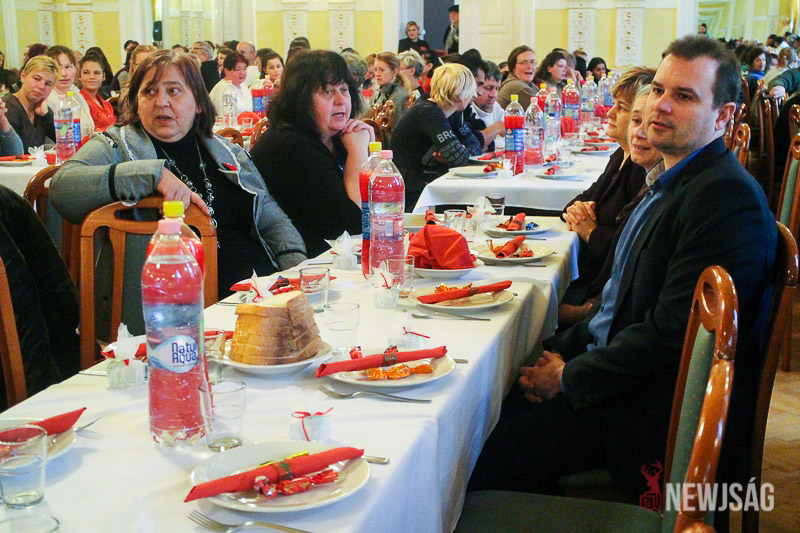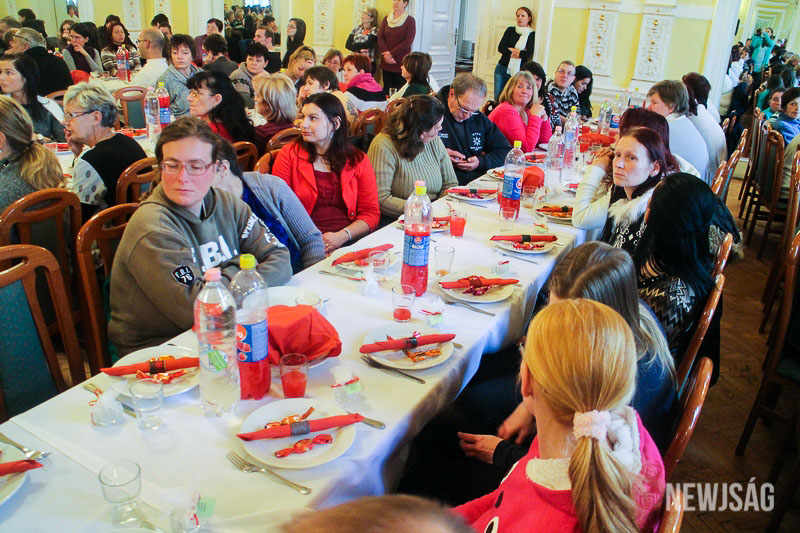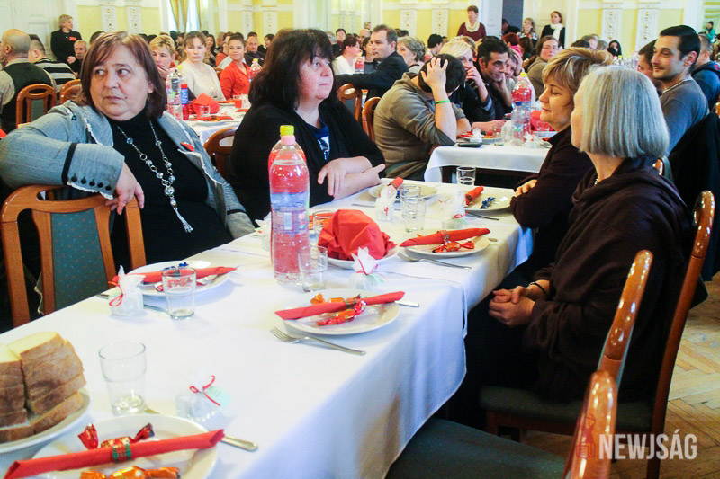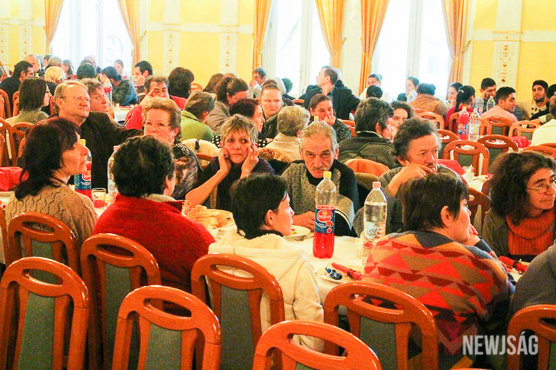 – Aki vezet otthon háztartást, tudja, hogy mennyi munka fekszik abban, hogy vasárnap délben egy 4-6 tagú családnak fehér asztal és megfőtt étel mellett jó étvágyat kívánunk – ezzel a hasonlattal szemléltette Tóth Tamásné, az Emberöltő Alapítvány elnöke azt a hosszadalmas előkészítő folyamatot, amelynek végén idén is közel 350 fő lakhatott jól. A különbség annyi, hogy kedden azokat várták az Árpád szálló dísztermében a megterített asztalokhoz, akiknek nem természetes, hogy töltött káposzta illata gőzölög karácsonykor.